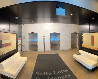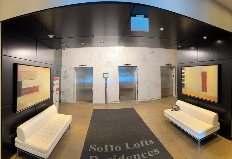 Commercial Remodeling, contracted to finish paint this 2 Tone Two-storey building in the Heart of Hazelton Avenue