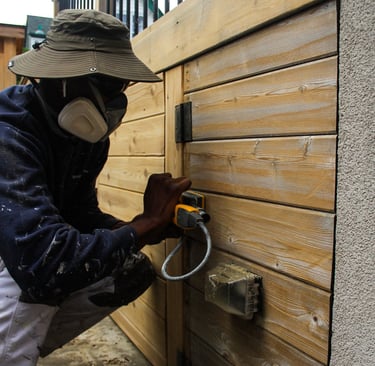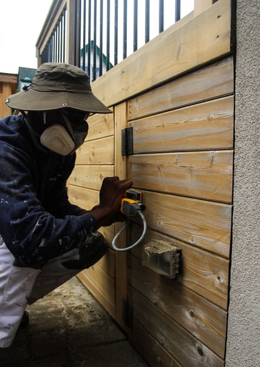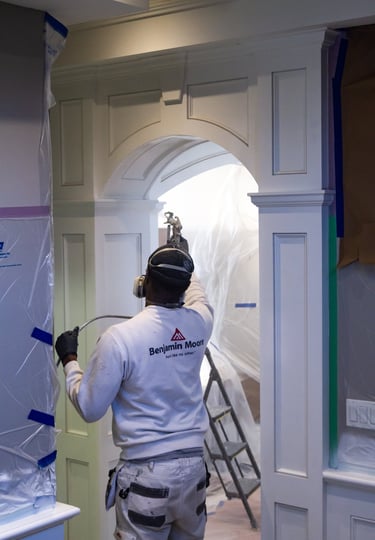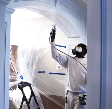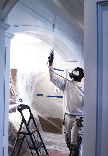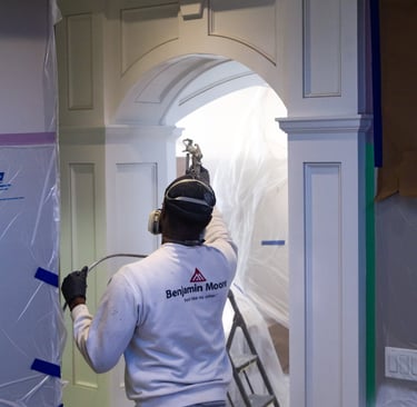 Masked Off Walls and Protected Furniture and Hardware while we Patched, sanded, caulked and Spray Finished the Trims